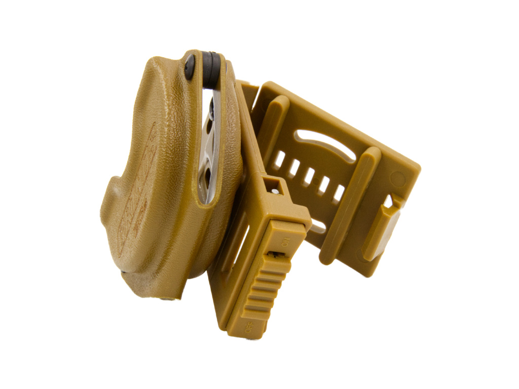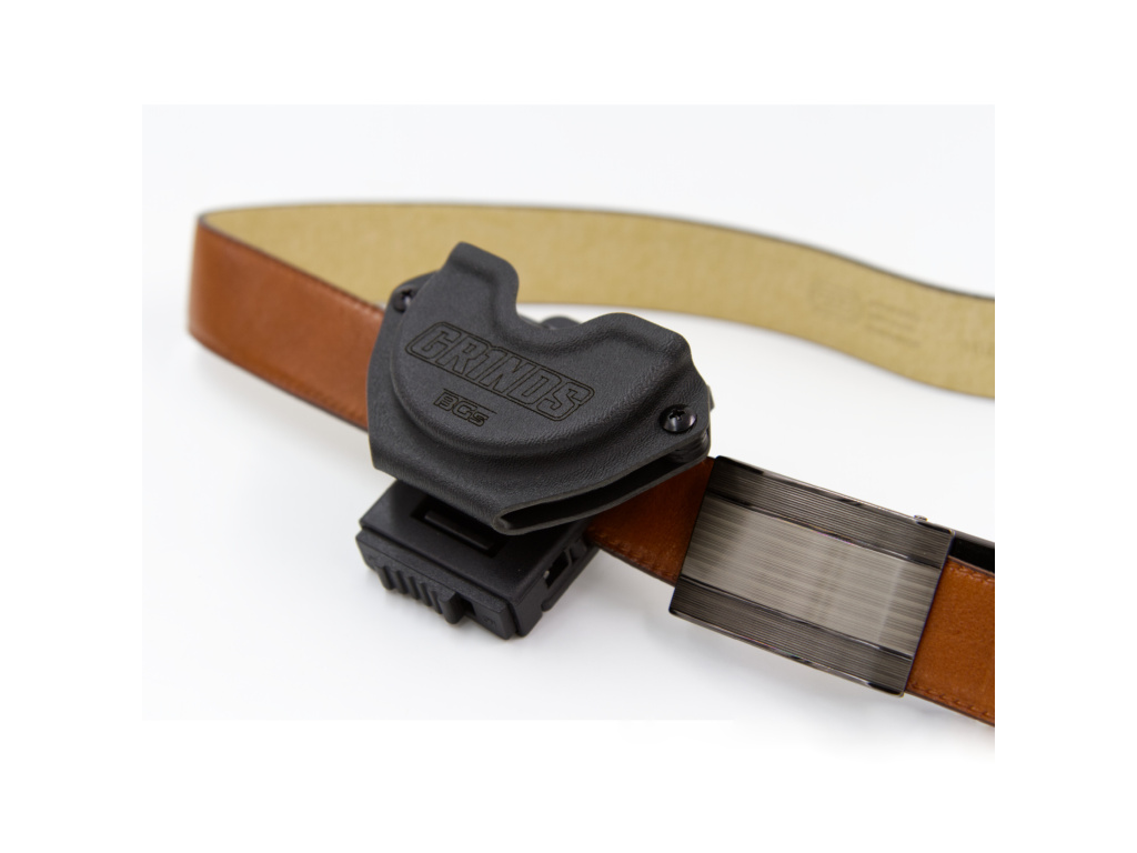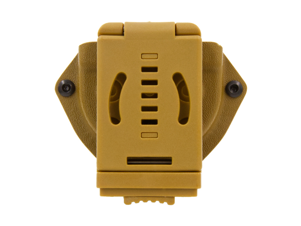 The integrated finger ramp allows for one-handed can removal, even while wearing gloves, while the adjustable retention screw ensures a precise fit for any puck-style can (Ø 70–72 mm). The holder is compatible with both everyday EDC carry and tactical setups.