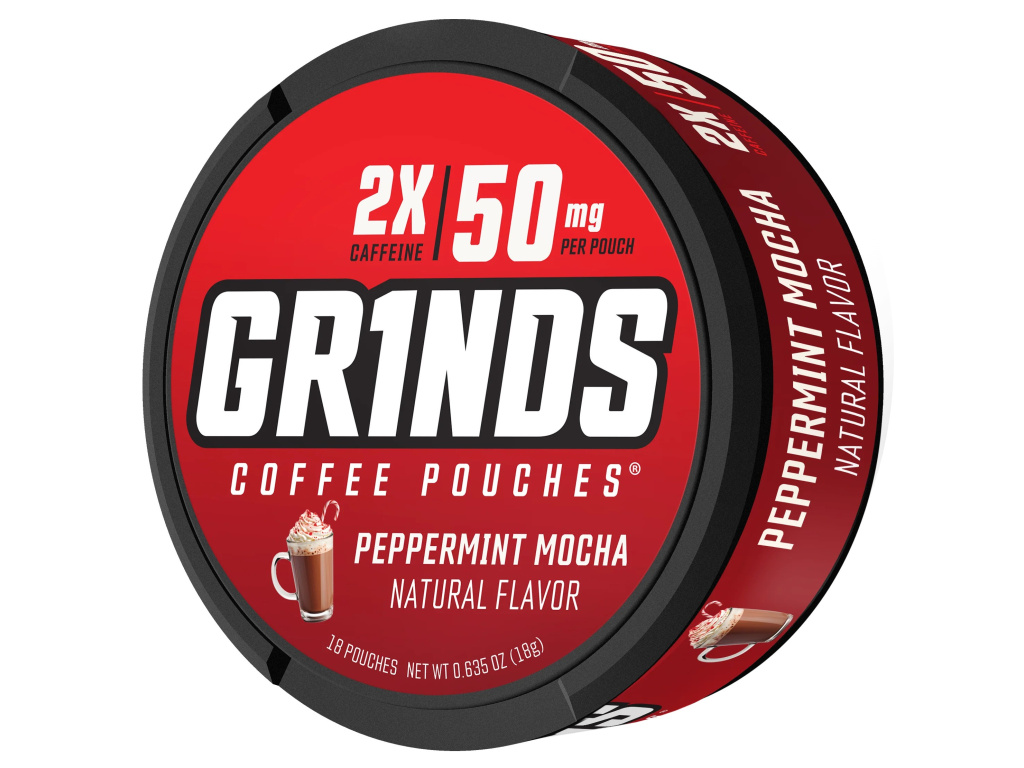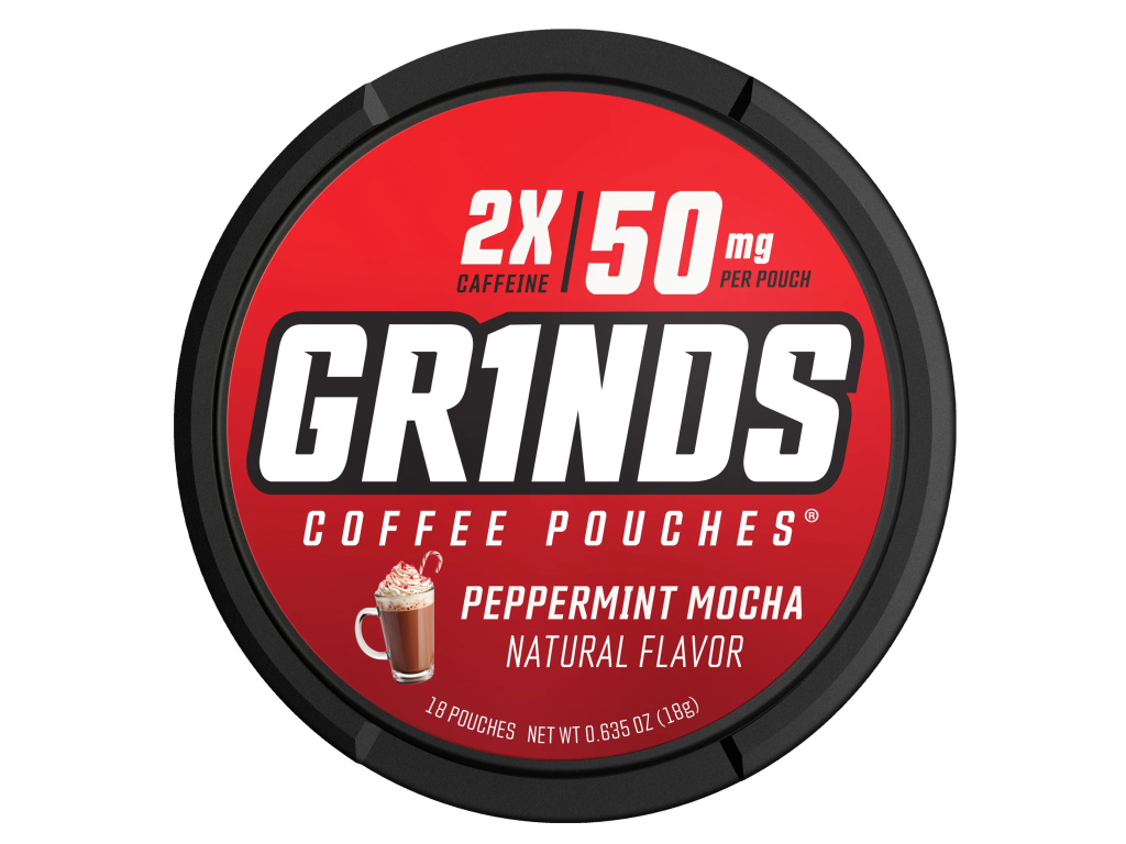 Každá plechovka GRINDS 50mg obsahuje 18 sáčků s příchutí Peppermint Mocha – dokonalá kombinace osvěžující máty a jemné čokolády. Peppermint Mocha přináší chuť zimní kávy i energii na celý den. Bez tabáku, bez nikotinu a bez cukru – zato s kofeinem, vitamíny B a taurinem.