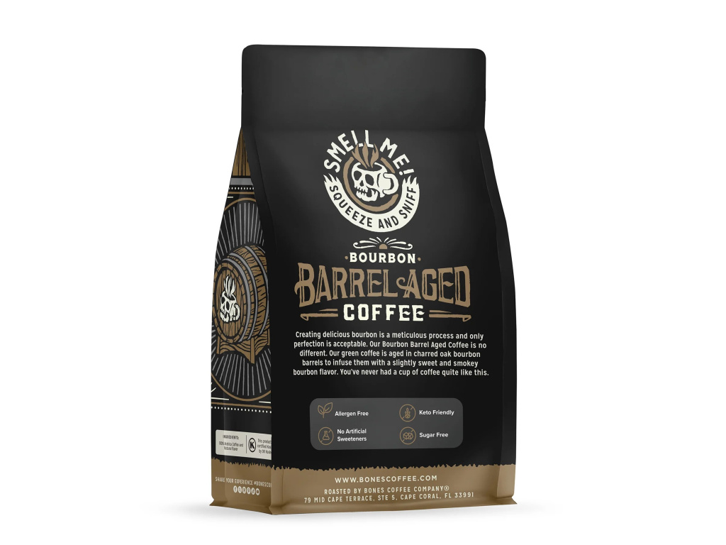 Káva Bones Coffee Company - Bourbon Barrel-Aged (káva zrající v bourbonových sudech)