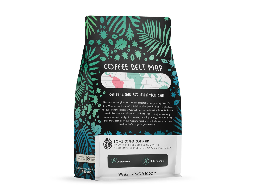 Breakfast Blend od Bones Coffee Company je klasická středně pražená káva stvořená pro dokonalý start dne. Tahle plná a vyvážená směs pochází ze slunných oblastí Střední a Jižní Ameriky a nabízí přirozeně bohatý chuťový profil bez ochucování.