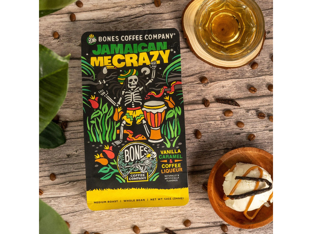 Káva Bones Coffee Company - Jamaican Me Crazy® (vanilka, karamel a kávový likér - bez alkoholu)