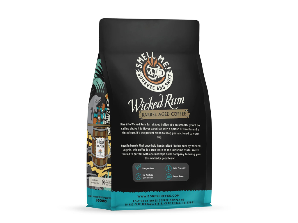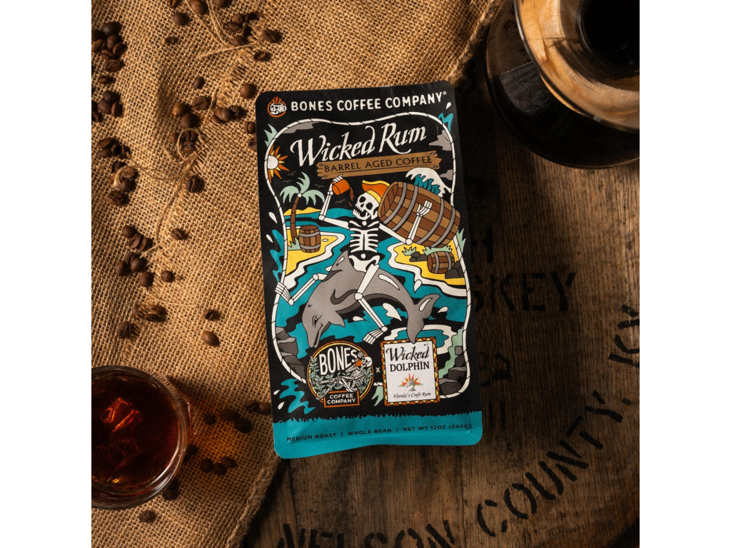 Káva Bones Coffee Company - Wicked Rum Barrel-Aged Coffee (káva zrající v rumových sudech)