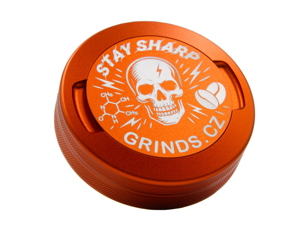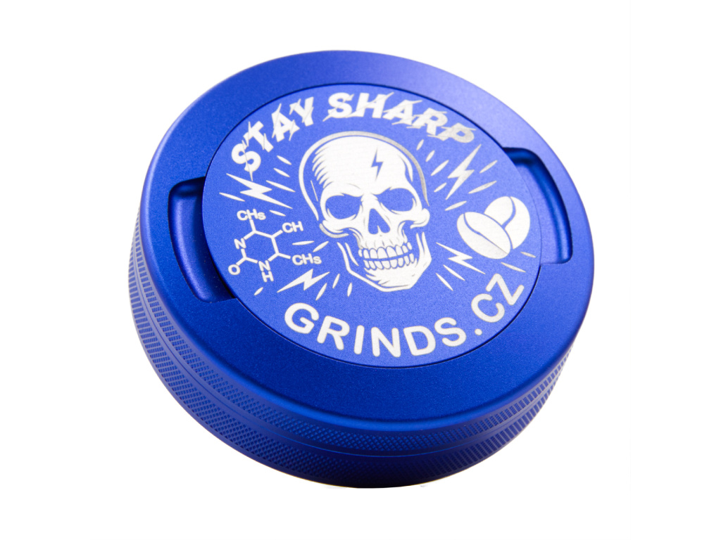 Vyrobena z odolného eloxovaného duralu s protiskluzovou úpravou po obvodu horní a spodní části, šroubovací konstrukcí pro lepší těsnost a s pevně přiléhajícím víčkem s gumovým těsněním pro odložení použitých sáčků! Navíc s unikátní grafikou lebky, molekuly kofeinu a nápisem STAY SHARP – vždy připravena podpořit tvé soustředění.